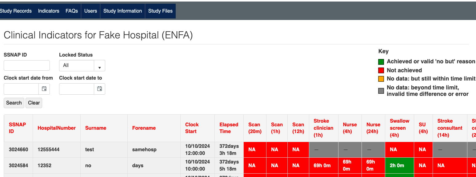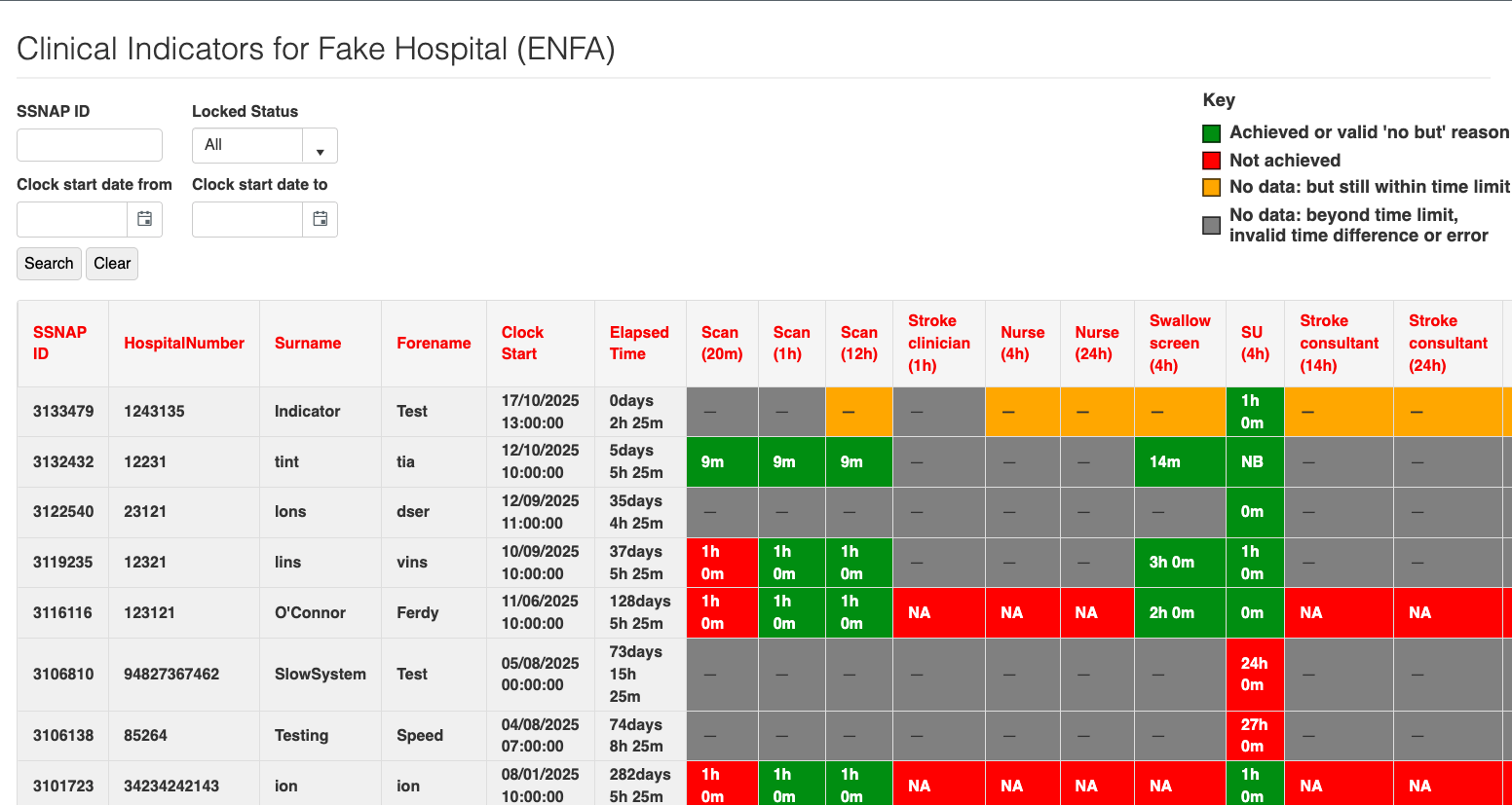 The indicators shown are based on real time data entry: please note that these are not official results and may differ from official calculations in SSNAP reporting