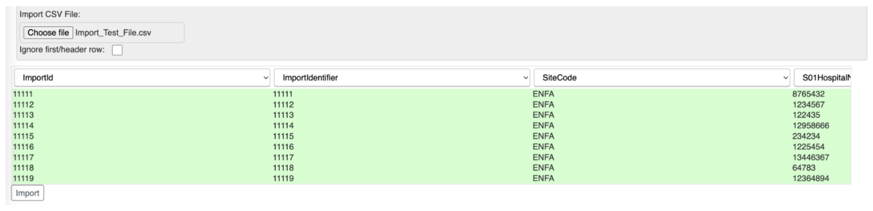 Please populate the ImportIdentifier field with your unique import identifier. It is essential that you include an ImportIdentifier for each patient record. Do not use the ImportID field.